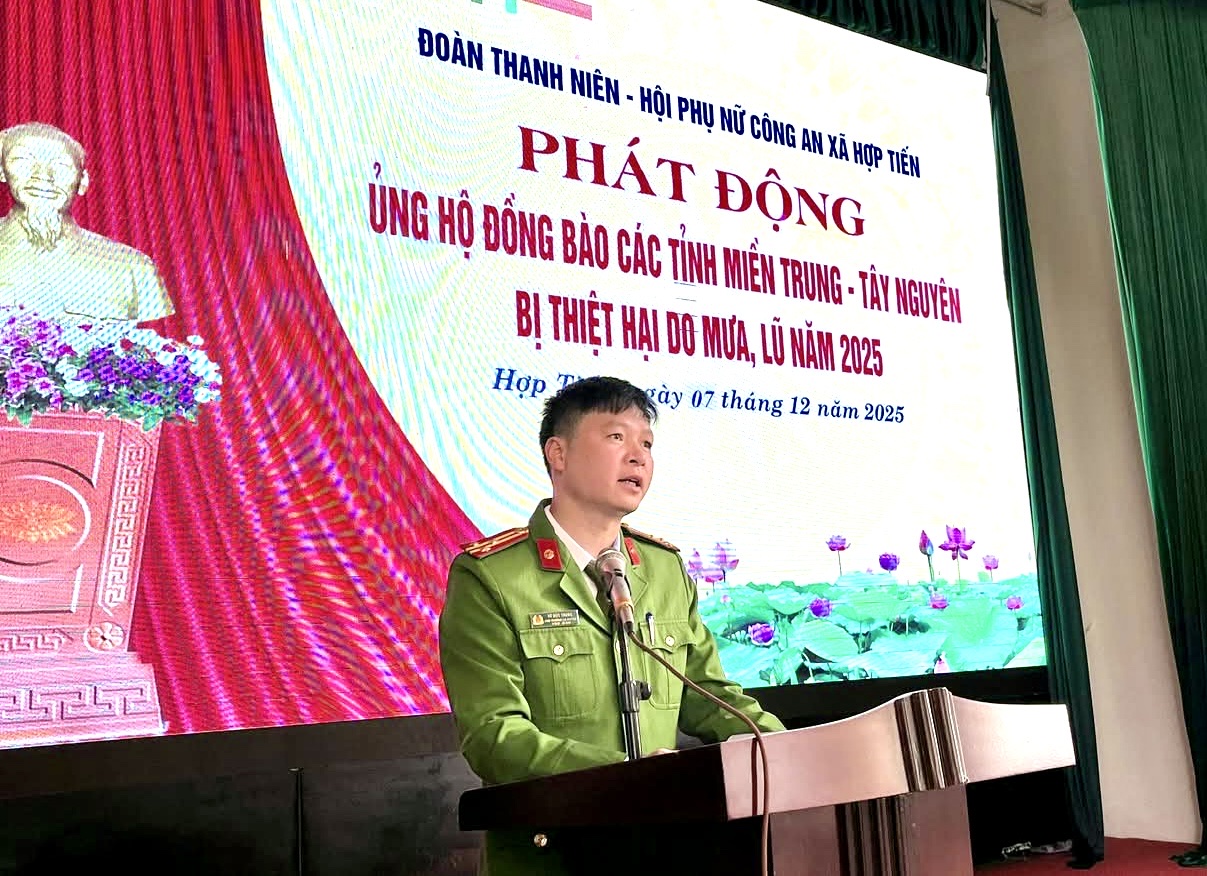 Tại buổi lễ, Thượng tá Vũ Đức Trung, Bí thư Đảng uỷ, Trưởng Công an xã Hợp Tiến đã phát lời kêu gọi toàn thể cán bộ, chiến sĩ nêu cao tinh thần tương thân tương ái, trách nhiệm cộng đồng; tích cực tham gia đóng góp tùy theo điều kiện của mình. Mỗi phần quà, mỗi sự đóng góp đều chứa đựng tình cảm, sự sẻ chia, góp phần động viên đồng bào vùng lũ sớm vượt qua khó khăn, ổn định cuộc sống.
