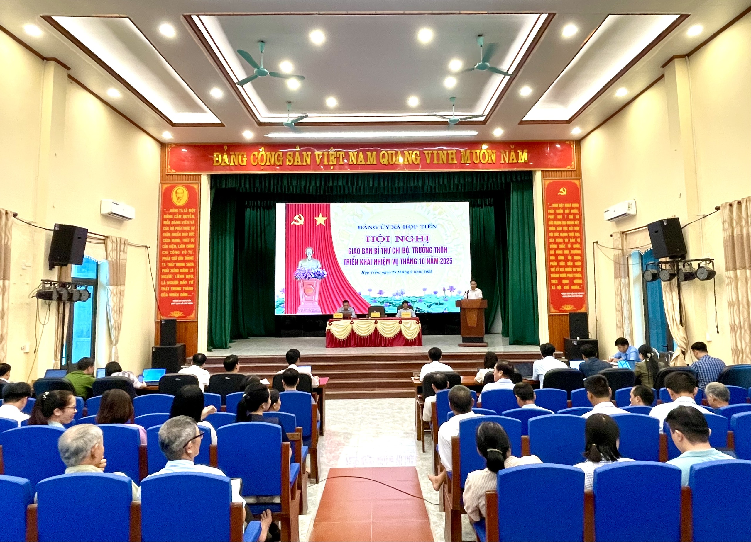Chiều ngày 29/9, Ban Thường vụ Đảng ủy xã Hợp Tiến tổ chức Hội nghị giao ban Bí thư chi bộ, trưởng thôn nhằm đánh giá kết quả thực hiện công tác xây dựng Đảng, MTTQ, tình hình phát triển kinh tế - xã hội, quốc phòng, an ninh tháng 9 và đề ra phương hướng, nhiệm vụ tháng 10/2025.