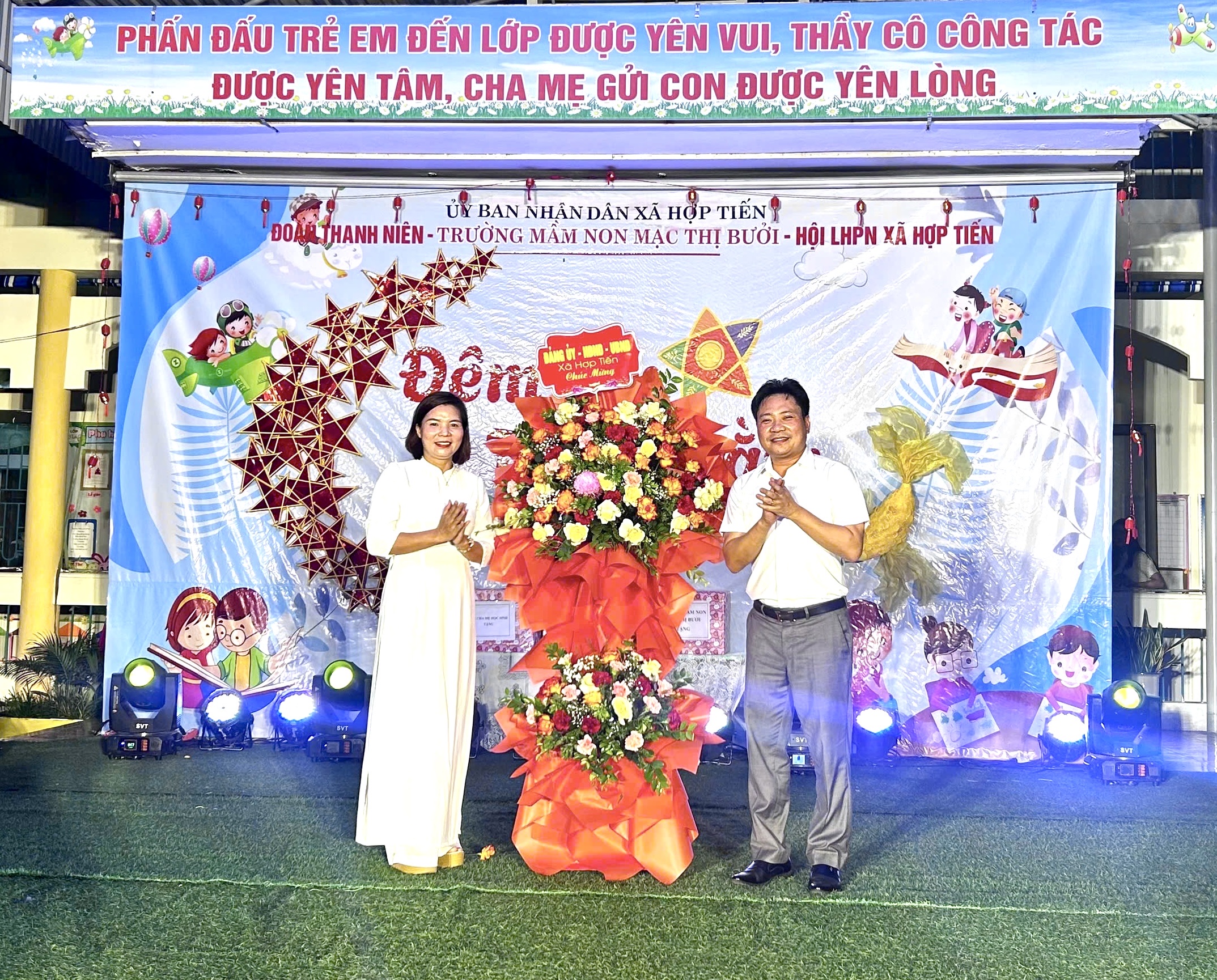 Hòa trong không khí vui tươi, rộn ràng của Tết Trung thu, chiều và tối ngày 3/10, Trường Mầm non Hợp Tiến và Trường Mầm non Mạc Thị Bưởi đã tổ chức chương trình “Đêm hội Trăng rằm” cho các bé. Tham dự chương trình có đồng chí Vương Xuân Thủy – Bí thư Đảng ủy, Chủ tịch HĐND xã; đồng chí Lê Thị Lan Phương – Phó Chủ tịch UBND xã cùng các đồng chí Trưởng Phòng Văn hóa – Xã hội; Trưởng các ngành đoàn thể và đông đảo các bậc phụ huynh cùng các em học sinh.