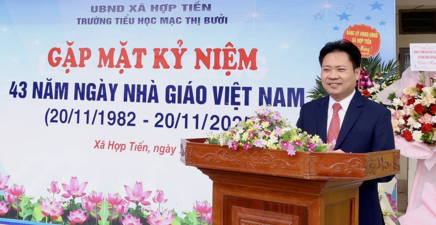 Đồng chí Vương Xuân Thủy – Bí thư Đảng ủy, Chủ tịch HĐND xã phát biểu tại buổi lễPhát biểu tại buổi lễ, đồng chí Vương Xuân Thủy bày tỏ sự tri ân sâu sắc đối với đội ngũ thầy cô giáo – những người đã tận tâm, tận lực cống hiến cho sự nghiệp trồng người. Đồng chí ghi nhận và đánh giá cao những nỗ lực của tập thể nhà trường trong thời gian qua, đặc biệt là việc đổi mới phương pháp giảng dạy, nâng cao chất lượng giáo dục, chăm lo tốt cho học sinh bán trú và tạo dựng môi trường học tập an toàn, thân thiện.