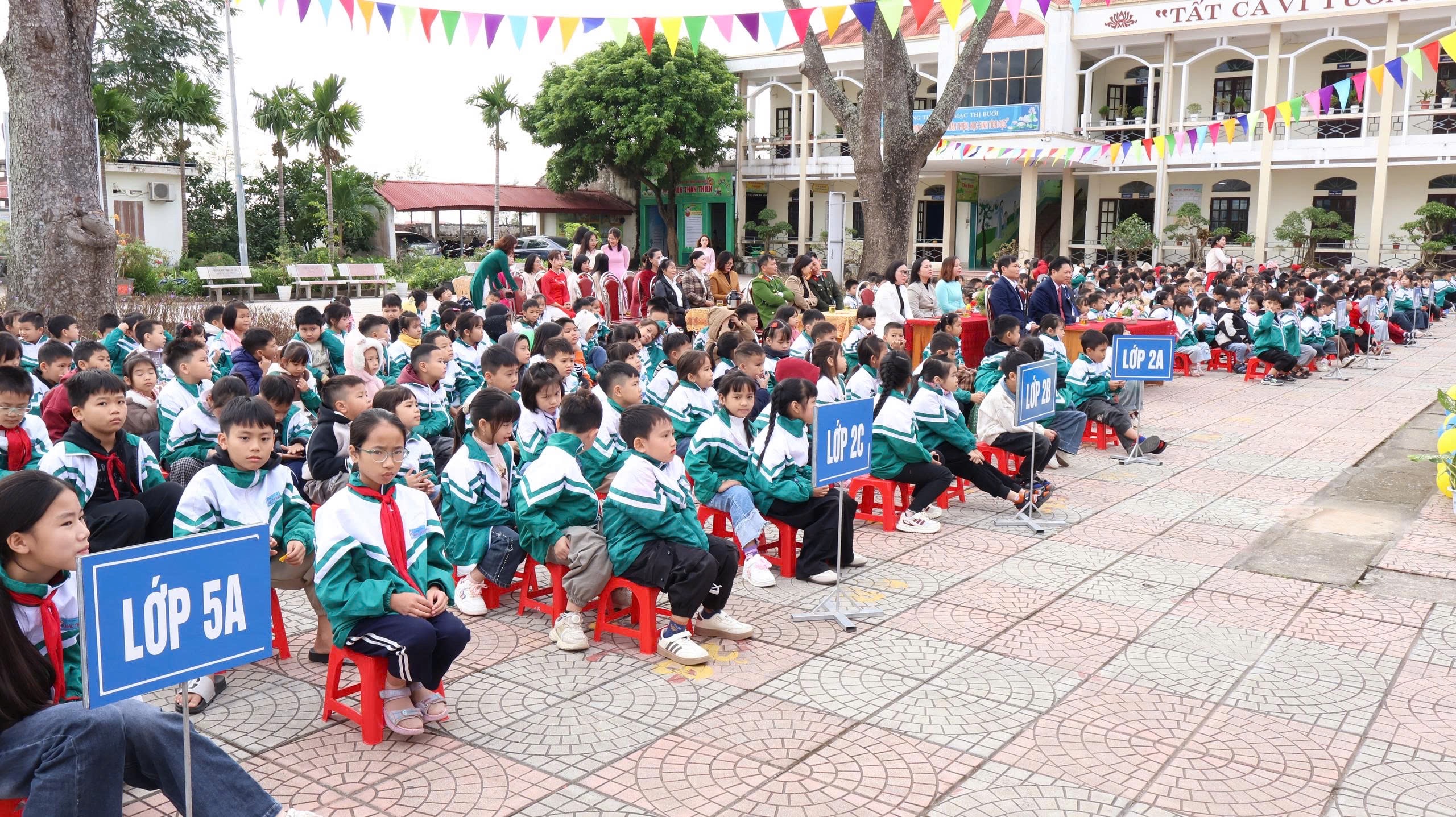Toàn cảnh buổi lễĐồng chí cũng mong muốn đội ngũ giáo viên tiếp tục phát huy tinh thần trách nhiệm, không ngừng học hỏi, đổi mới sáng tạo để xây dựng Trường Tiểu học Mạc Thị Bưởi ngày càng phát triển; đồng thời đề nghị cấp ủy, chính quyền địa phương tiếp tục quan tâm đầu tư cơ sở vật chất, tạo điều kiện tốt nhất để nhà trường hoàn thành xuất sắc nhiệm vụ.