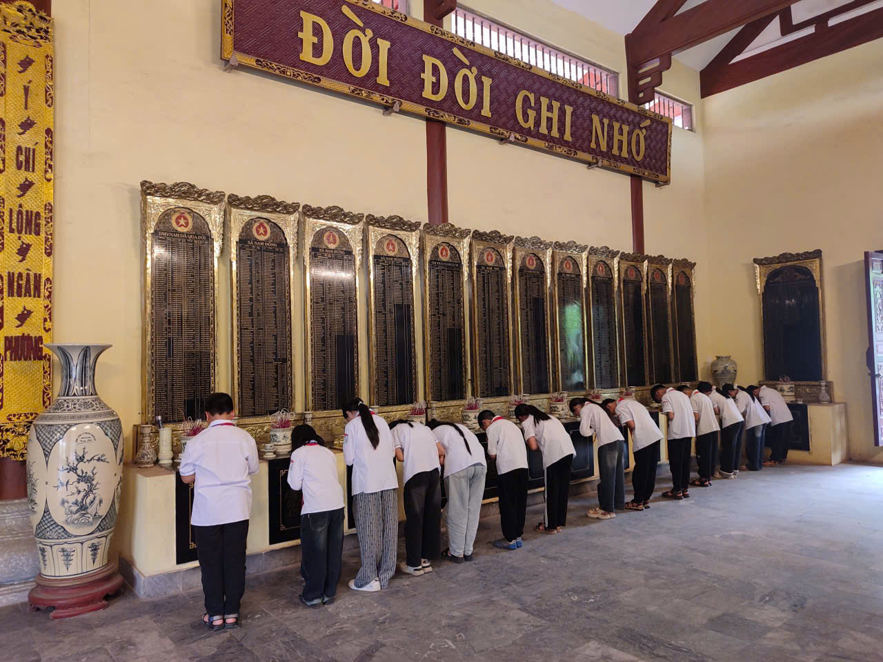 Thầy cô và các em học sinh dâng hương trước anh linh Chủ tịch Hồ Chí Minh và các anh hùng liệt sĩTrong không khí trang nghiêm, thành kính tại Đền Liệt sĩ Nam Sách, tập thể thầy cô giáo và các em học sinh đã tổ chức dâng hương tưởng niệm, bày tỏ lòng biết ơn sâu sắc đối với các anh hùng liệt sĩ đã anh dũng hy sinh vì độc lập, tự do của Tổ quốc. Đây là hoạt động mang ý nghĩa nhân văn sâu sắc, góp phần giáo dục truyền thống “Uống nước nhớ nguồn”, hun đúc lý tưởng sống, tinh thần trách nhiệm cho học sinh.