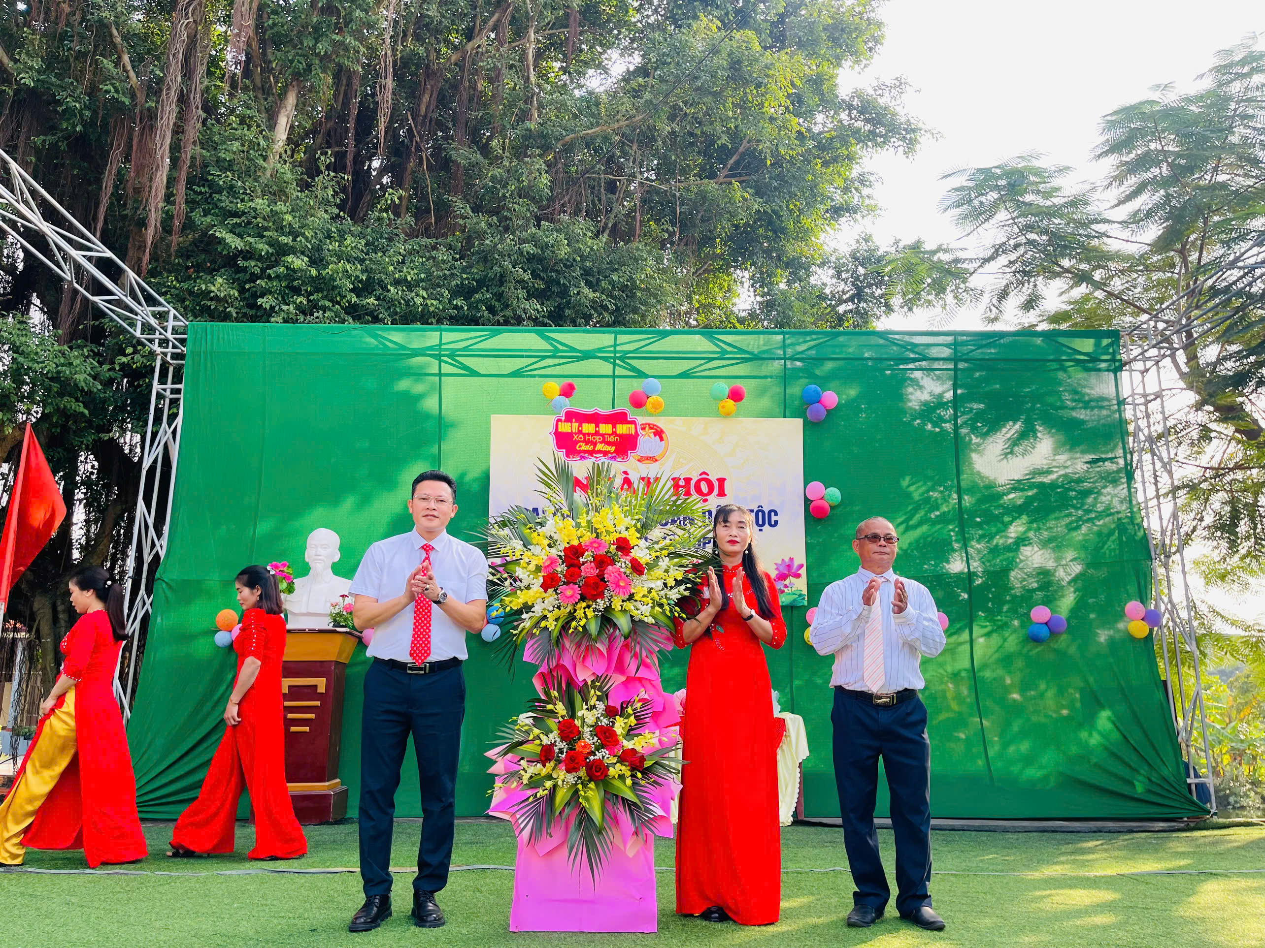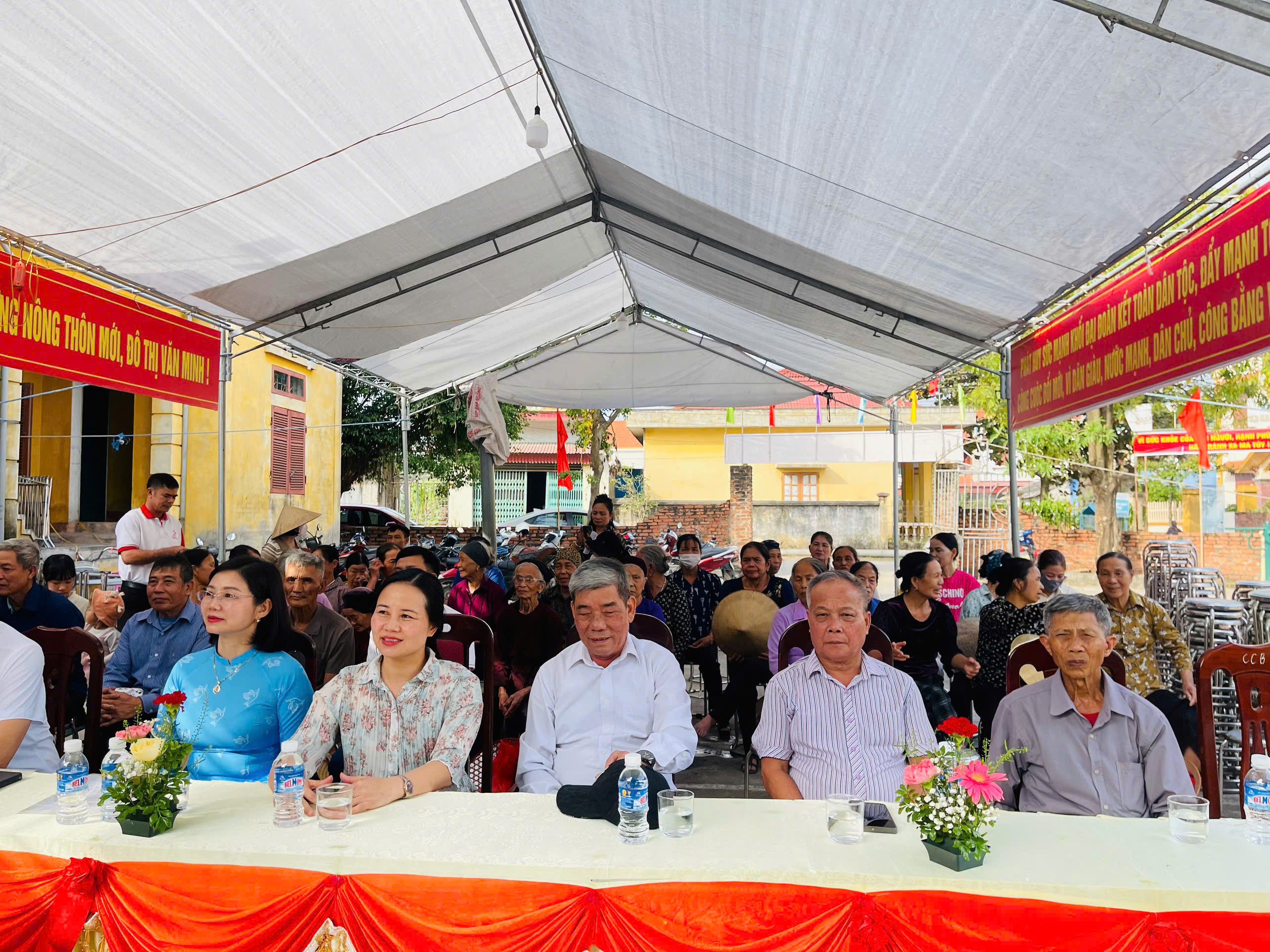 Đồng chí Vương Xuân Thủy – Bí thư Đảng ủy, Chủ tịch HĐND xã tặng hoa chúc mừngDự và chung vui với Nhân dân các thôn có các đồng chí đại diện Đảng ủy, HĐND, UBND, Ủy ban MTTQ Việt Nam xã Hợp Tiến cùng lãnh đạo các ban, ngành, đoàn thể của xã. Các đoàn công tác đã đến tặng hoa, động viên và chia sẻ niềm vui cùng bà con.