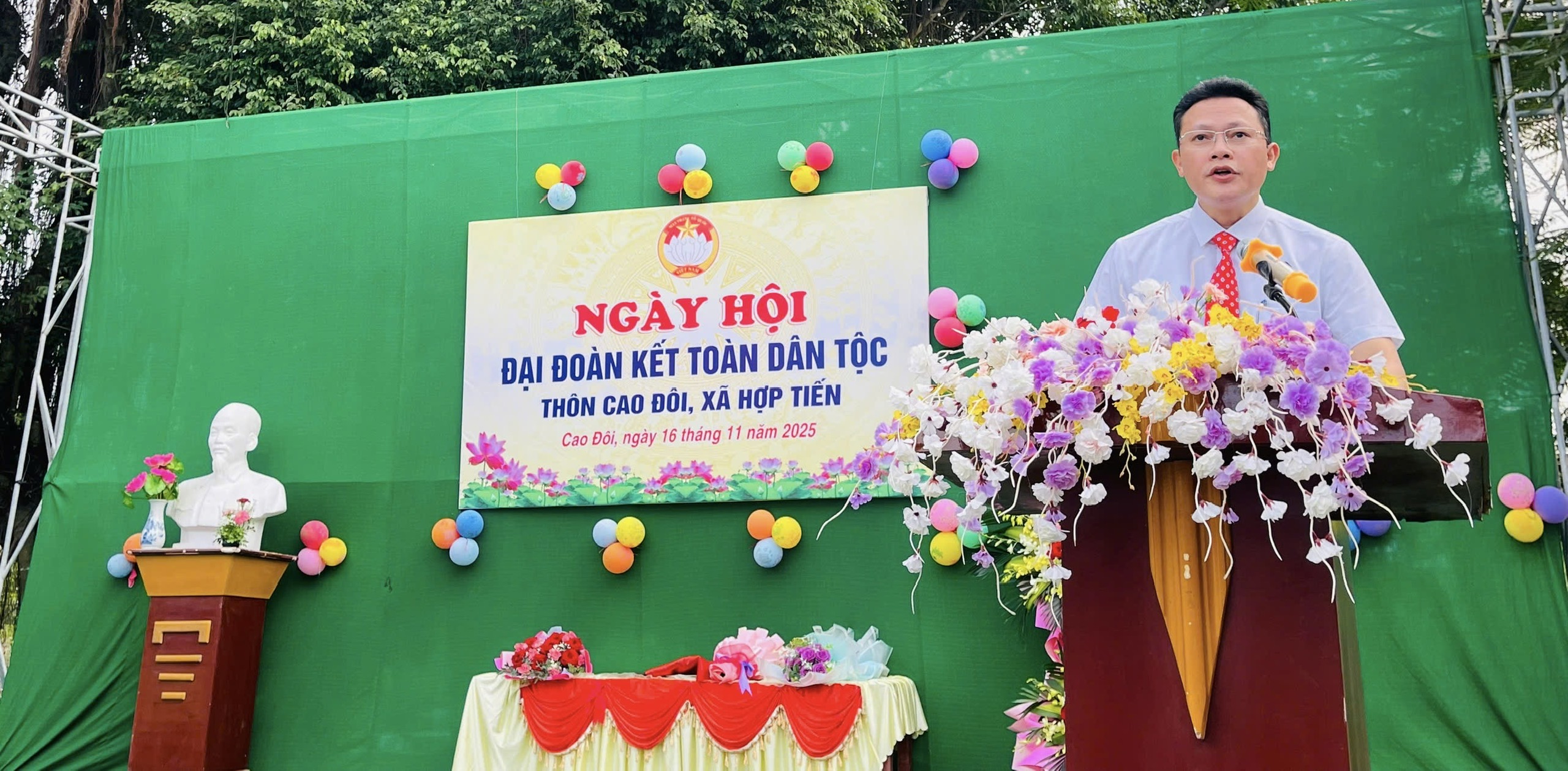 Đồng chí Vũ Xuân Độ - Phó Bí thư Đảng ủy, Chủ tịch UBND xã phát biểu tại ngày hộiPhát biểu tại các Ngày hội, lãnh đạo xã Hợp Tiến ghi nhận và biểu dương những kết quả mà cán bộ và Nhân dân các thôn đạt được thời gian qua; đồng thời mong muốn mỗi khu dân cư tiếp tục phát huy tinh thần đoàn kết, tích cực tham gia các phong trào thi đua yêu nước, góp phần xây dựng xã Hợp Tiến ngày càng phát triển, văn minh và giàu đẹp.