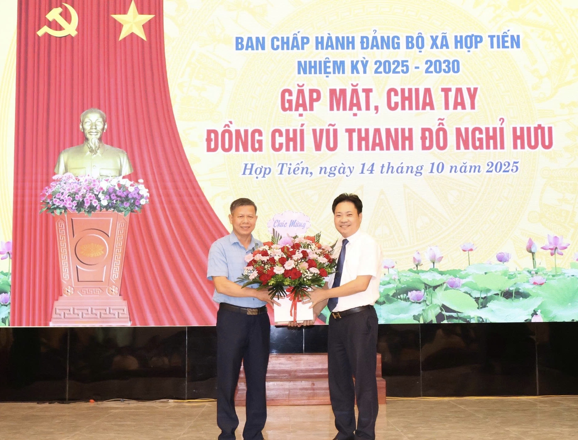 Đảng ủy, HĐND, UBND, Ủy ban MTTQ và các đoàn thể xã Hợp Tiến đã tổ chức buổi gặp mặt chia tay đồng chí Vũ Thanh Đỗ, Phó Chủ tịch TT Ủy ban MTTQ xã, Chủ tịch Hội Nông dân xã Hợp Tiến về nghỉ hưu theo chế độ của Nhà nước. Dự buổi gặp mặt có các đồng chí trong Ban Thường vụ, Ban Chấp hành Đảng bộ xã, lãnh đạo các ban, ngành, đoàn thể cùng đại diện các thôn trên địa bàn.