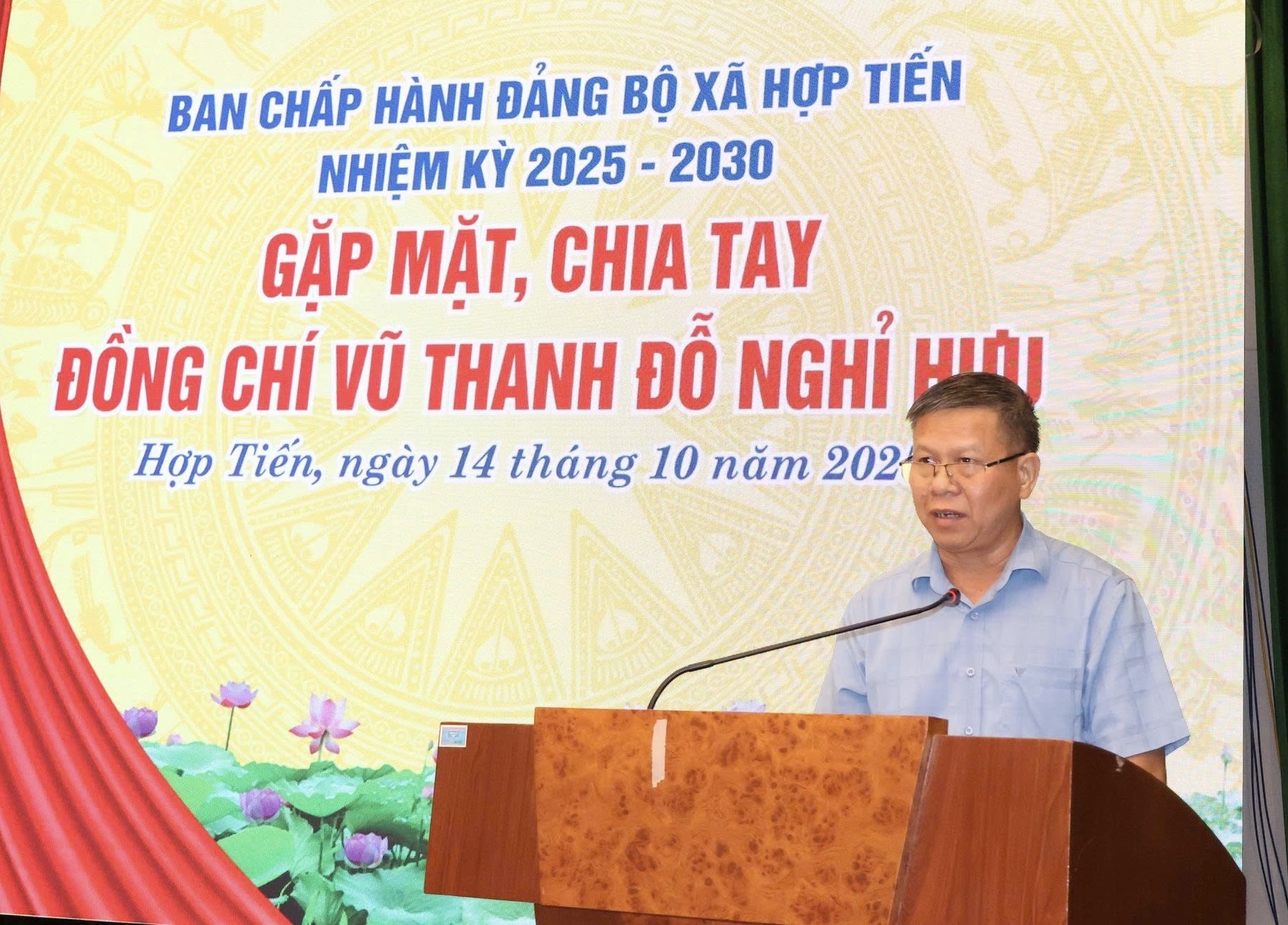 Tại buổi chia tay, các đại biểu đã ôn lại quá trình công tác, những đóng góp của đồng chí Vũ Thanh Đỗ trong suốt quá trình công tác tại địa phương. Với tinh thần trách nhiệm, tận tụy và tâm huyết, đồng chí đã cùng tập thể lãnh đạo xã hoàn thành tốt nhiều nhiệm vụ phát triển kinh tế - xã hội, góp phần xây dựng quê hương Hợp Tiến ngày càng đổi mới.